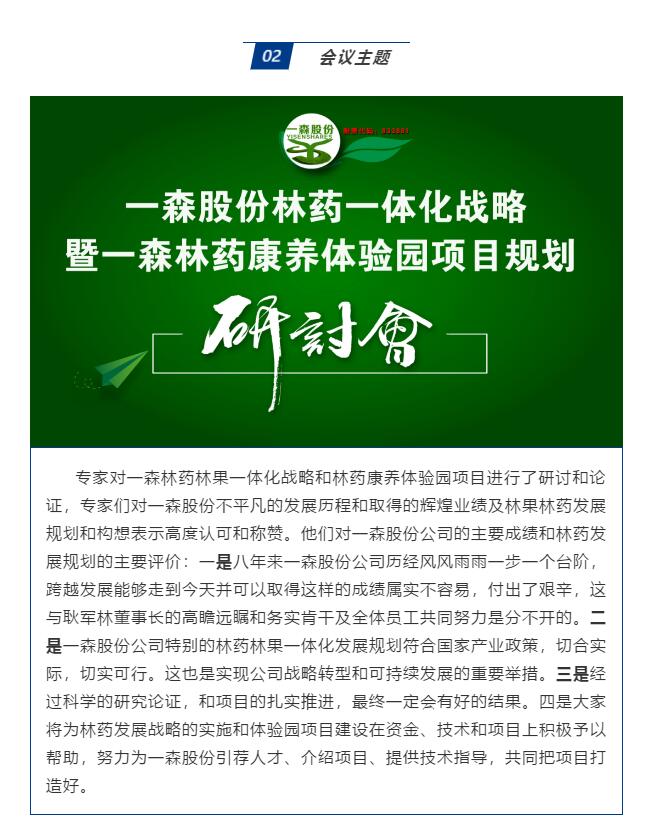 一森股份林藥一體化戰(zhàn)略暨一森林藥康養(yǎng)體驗(yàn)園項(xiàng)目規(guī)劃研討會(huì) 圓滿召開